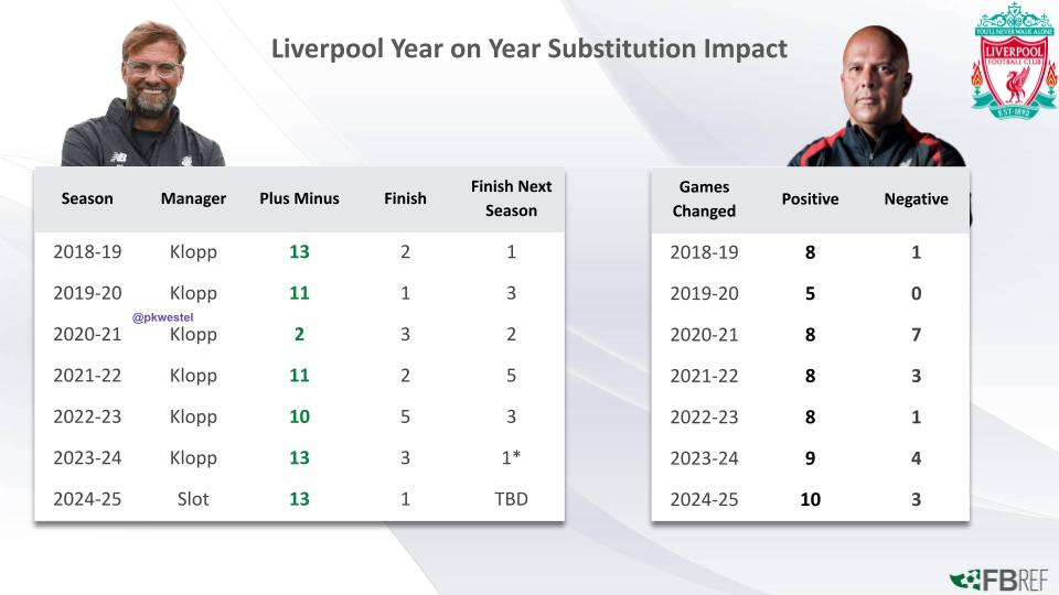 Digging into the data to understand whether substitution impact reflects managerial skill or the depth of your squad